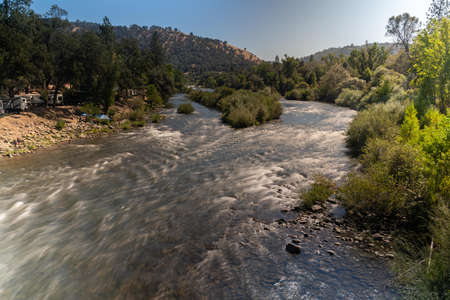 Landscape image of north fork of Boise mountain river in Idaho in the fall.