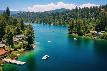 Serene Splendor: Captivating Aerial Views of Lake Arrowhead Village's Breathtaking Summer Landscape