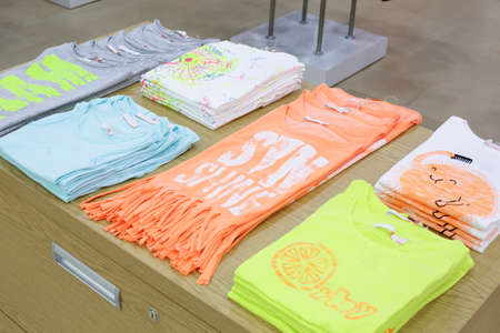 Colorful T-shirt on the clothes rack in the mall