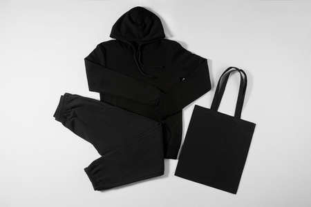 Comfort clothing and black price tag as flatlay background, sustainable fashion and brand label concept