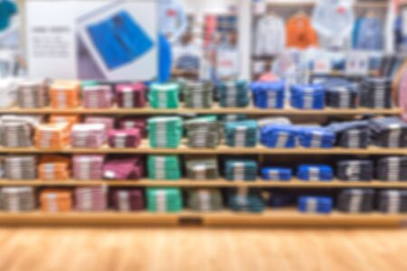 MOSCOW, RUSSIA - SEPTEMBER 20, 2018: interior shot of Miniso shop. Miniso is a Chinese low-cost retailer and variety store chain that specializes in household and consumer goods.
