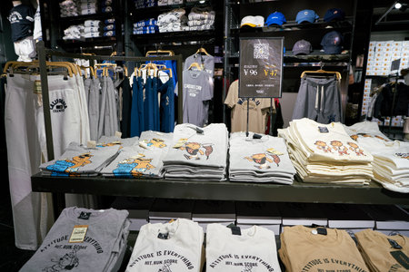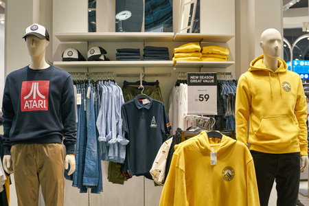 HONG KONG, CHINA - CIRCA JANUARY, 2019: interior shot of H&M store in Hong Kong. Hennes & Mauritz AB is a Swedish multinational clothing-retail company known for its fast fashion clothing.