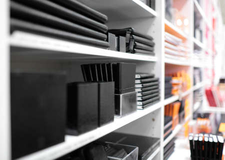 Shelves filled with various products in a store, illustrating a retail environment with diverse merchandise.