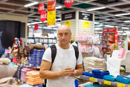 the buy buyers towels for the house and gives dollars to the seller. shopping concept