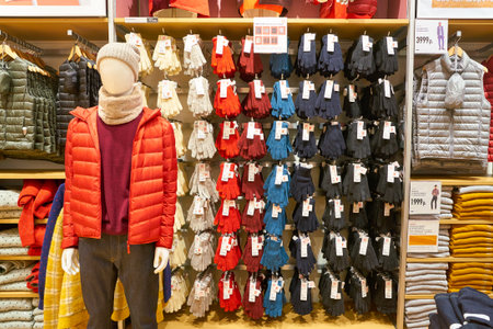 MOSCOW, RUSSIA - CIRCA SEPTEMBER, 2018: interior shot of Uniqlo store in Moscow. Uniqlo Co. Ltd is a Japanese casual wear designer, manufacturer and retailer