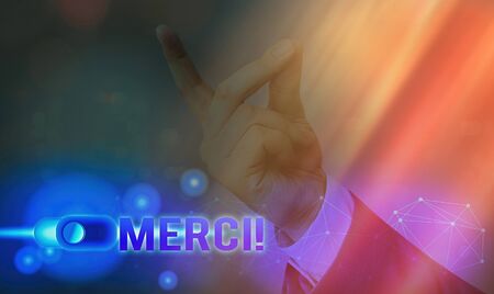 Text sign showing Merci. Conceptual photo defined as thank you in French language Being grateful to someone.