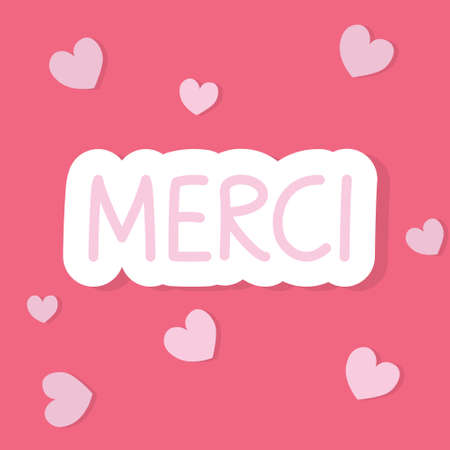 Thank you in french language. Lettering with modern hand writing calligraphic with golden rose trendy color. Vector illustration. This concept design for thank you card, banner or advertising