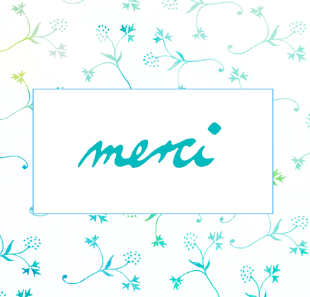 Merci - Thank you in French language. Modern calligraphy lettering text on beautiful background with floral elements.