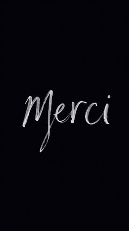 Handwritten merci on a black background expressing gratitude and appreciation in a stylish manner
