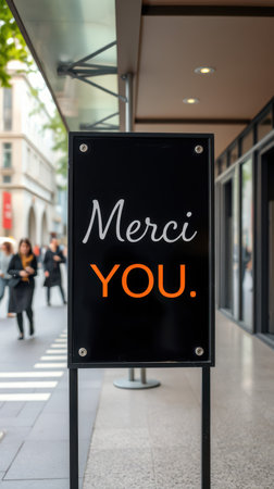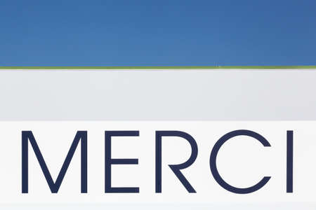 Text sign showing Merci. Internet Concept what is said or response when someone helps you in France Thank you