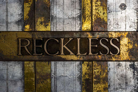 Reckless text on textured grunge copper and vintage gold background