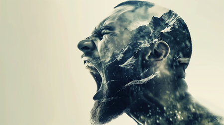A person fighting through various mental health conditions expressing deep emotions. Concept Mental health struggles, Emotional expression, Inner turmoil, Vulnerability, Personal growth
