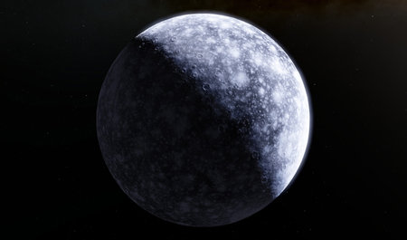 Planet Mercury in the Starry Sky of Solar System in Space.