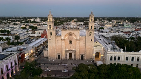 Merida, Yucatan, Mexico - Oct 28, 2024: The Cathedral of San Ildefonso in the center of Merida, capital of Yucatan, the oldest in Mexico