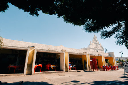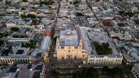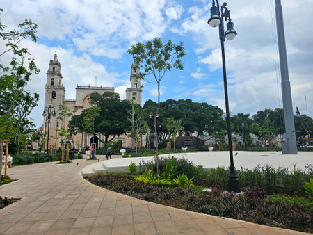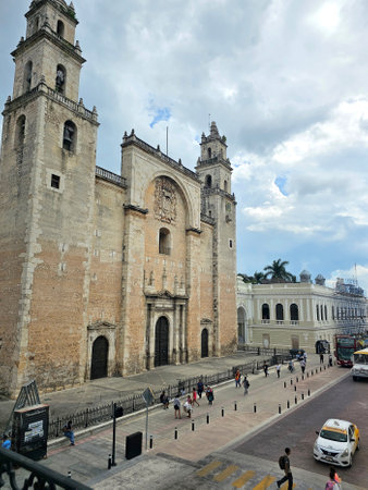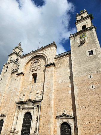 Merida, Yucatan, Mexico - Oct 28 2024: The Yucatan Cathedral, in the city of Merida, capital of the state, dedicated to Saint Ildefonso, the oldest in Mexico