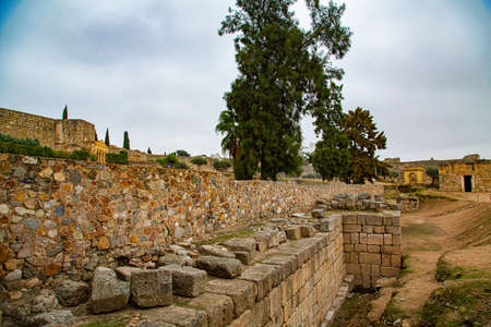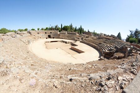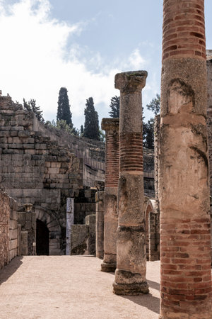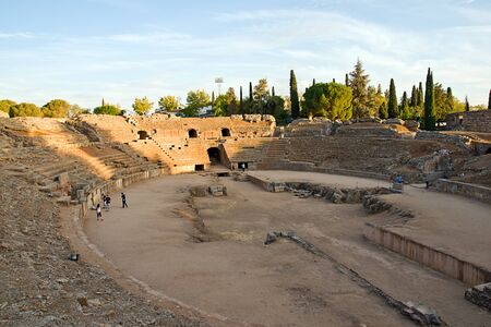 Roman Amphitheatre in Merida, Augusta Emerita in Extremadura, Spain. Roman City - Temples, Theatres, Monuments, Sculptures and Arenas