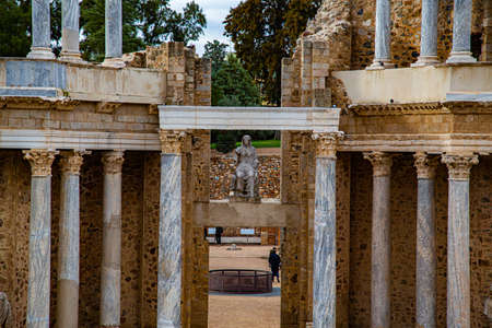 Ancient roman theatre merida, spain showing stone columns and historic architecture
