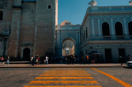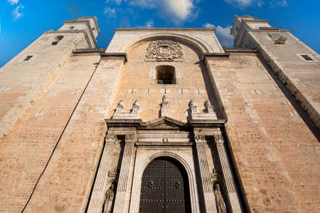 Merida, Mexico - May 24, 2021: The San Ildefonso Cathedral of Merida, the first cathedral to be finished on the American mainland and the only one to be entirely built during the 16th century.