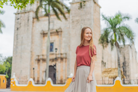 Woman tourist explores the vibrant streets of Valladolid, Mexico, immersing herself in the rich culture and colorful architecture of this charming colonial town