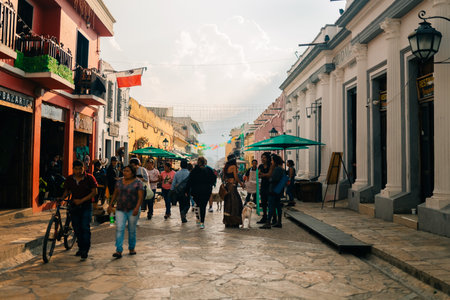 SAN CRISTOBAL, MEXICO- may 2023 Tzotzil Maya people at main waking street of San Cristobal de las casas . high quality photo