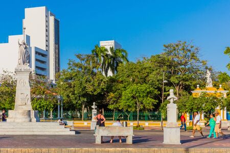 Cartagena , Colombia - March 5, 2017 : people in front of Parque del Centenario of Cartagena de los indias Bolivar in Colombia South America