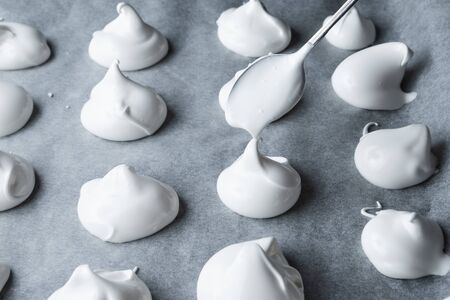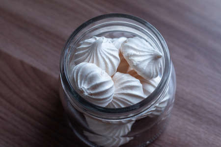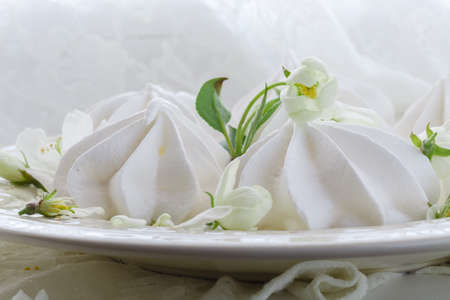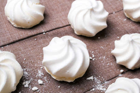 Marshmallows - meringue cookies made from egg whites, selective focus, close-up
