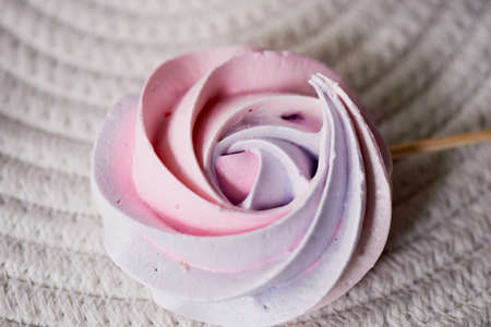 Pale pink pastel meringue on a stick. The sweetness that children love.Children's birthday party