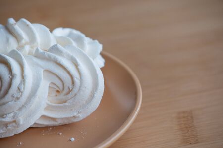 Delicate and fresh meringue with vanilla flavor. Close-up.