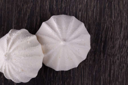 White Meringue Cookies. Sweet Desert over Gray rustic Wooden Board