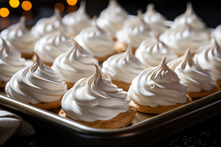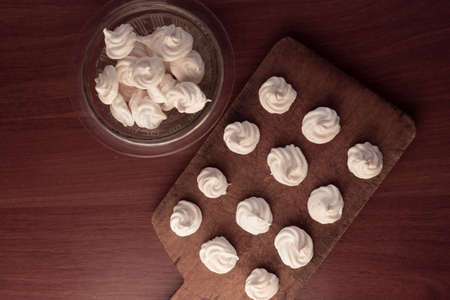 Sweet airy meringue, on a dark background. Home Cooking Concept