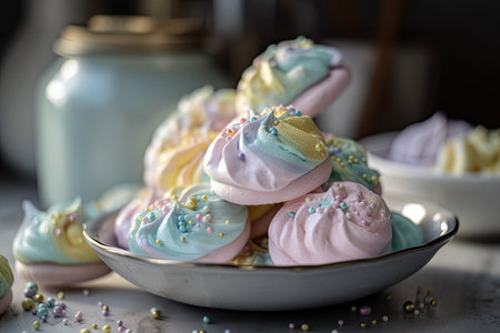 meringue cookies, with variety of delicious and colorful toppings, created with generative ai