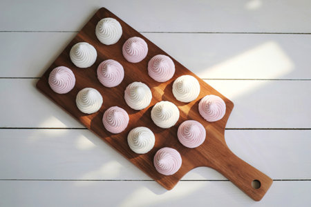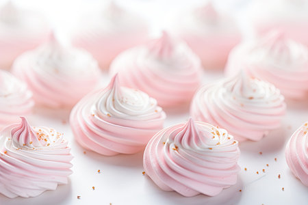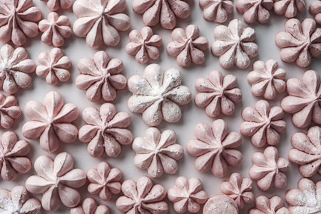 Soft pink meringue cookies arranged in a neat pattern. That the image is generated using AI.