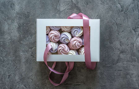 Zephyr on the rustic concrete background. Top view, flat lay.