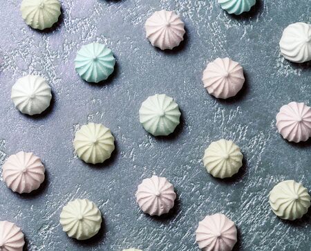 Pastel colored meringue on a beautiful textural background.