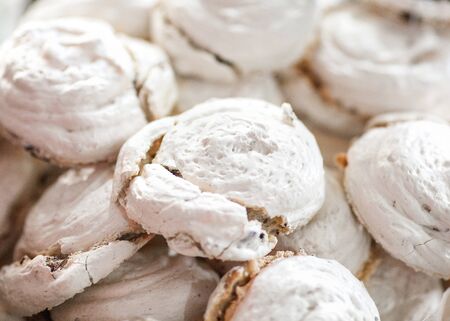 background and texture, a lot of marshmallows. A large of meringues sweets. background