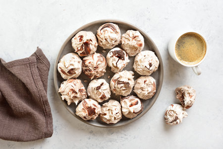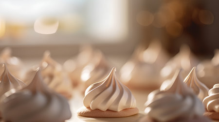 Stylish kitchen table setting with professional food photography of elegant meringue cookies