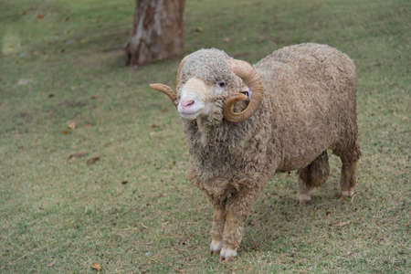 Cute funny sheep on farm. animal husbandry