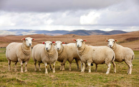 Sheep in a meadow in the South Island of New Zealand