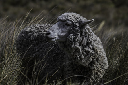 A closeup shot of a sheep eating on the slopes of the Chimborazo volcano, Ecuador