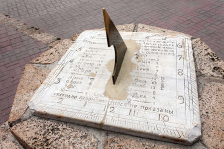 Old Sundial close-up, set in the city of Taganrog, Rostov Region.