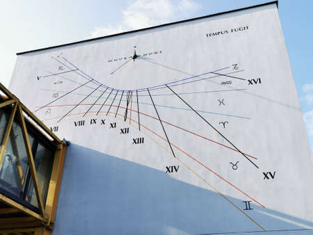 Sundial device on the wall of the university in Kaunas, Lithuania