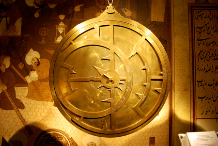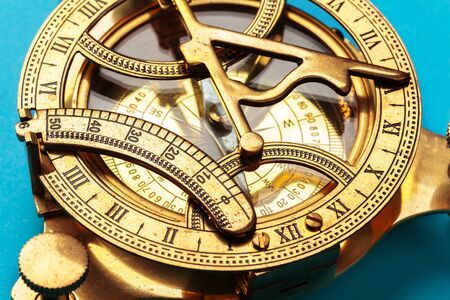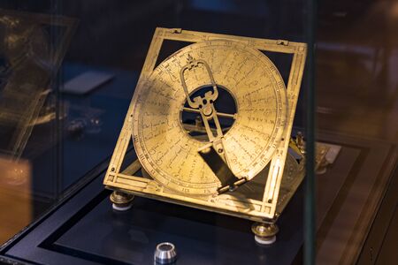 old copper astrolabe detail close up