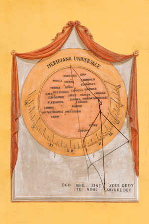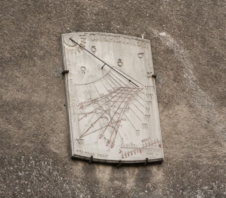 Ancient universal sundial on wall in Bra, Cuneo province, Italy