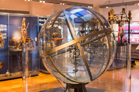 6.10.2019 Vienna,Austria .View of vintage globe. Interior of Austrian National Library old baroque library of Hapsburg empire located in Hofburg Palace.