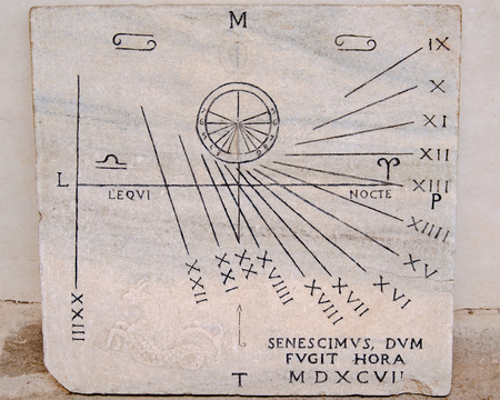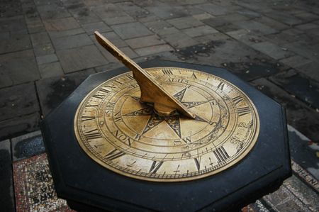 Old historic design.a sundial tells the time by shadows from the sun.