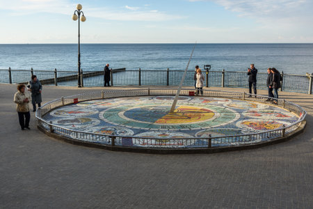 Svetlogorsk, Kaliningrad region, Russia - September 30, 2021: Sundial clock with zodiac signs on promenade
