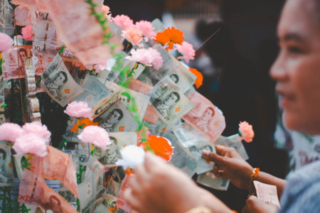 Chiang Mai, Thailand - OCTOBER 20, 2019 : Children and the poor are waiting to receive donations and money from philanthropists in Chiang Mai