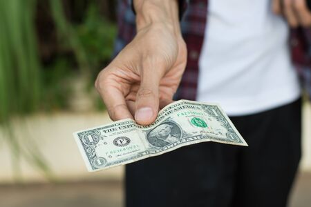 Man show and giving money,selective focus.