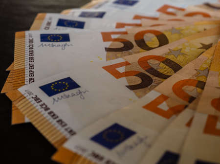 detail of 50 euro banknotes