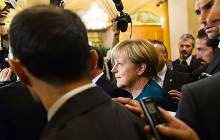 MILAN, ITALY - Oct 17, 2014: German Chancellor Angela Merkel after the meeting on the ASEM summit of European and Asian leaders in Milan